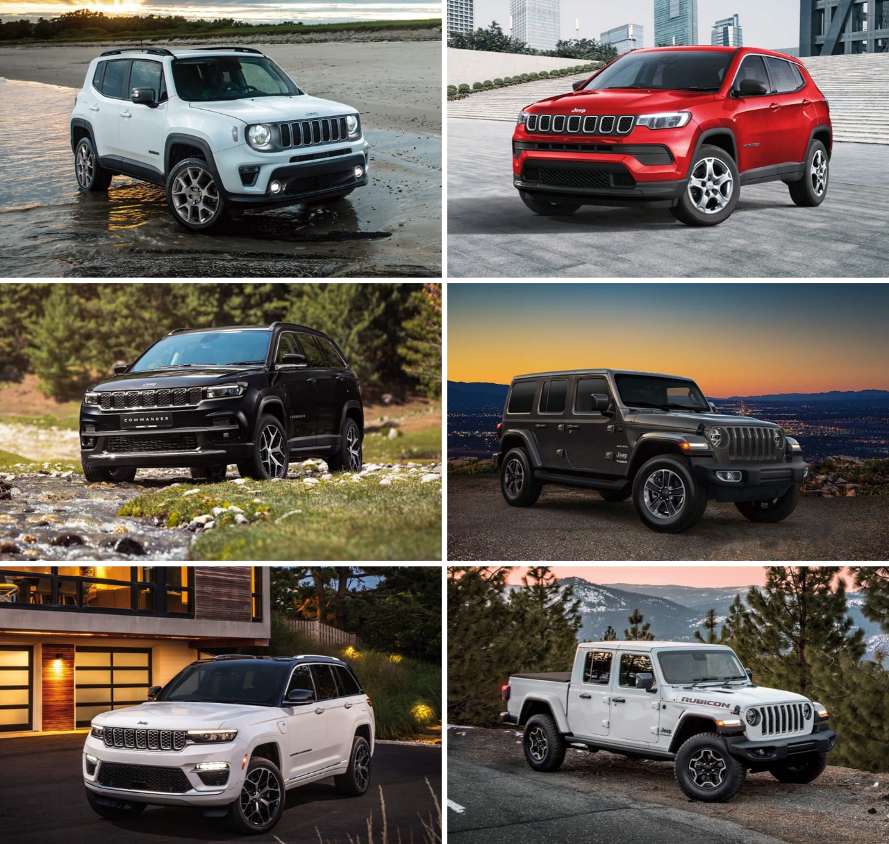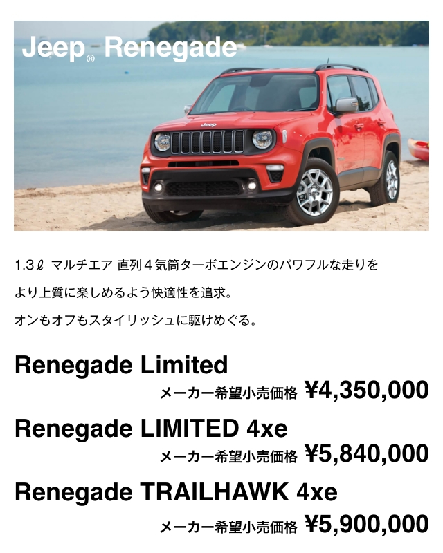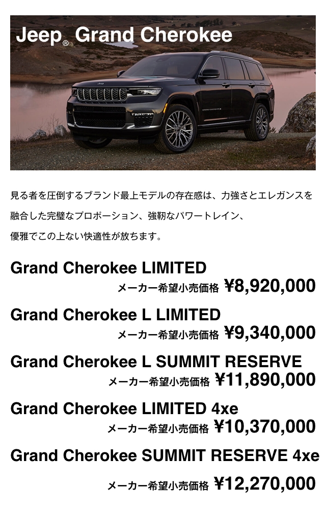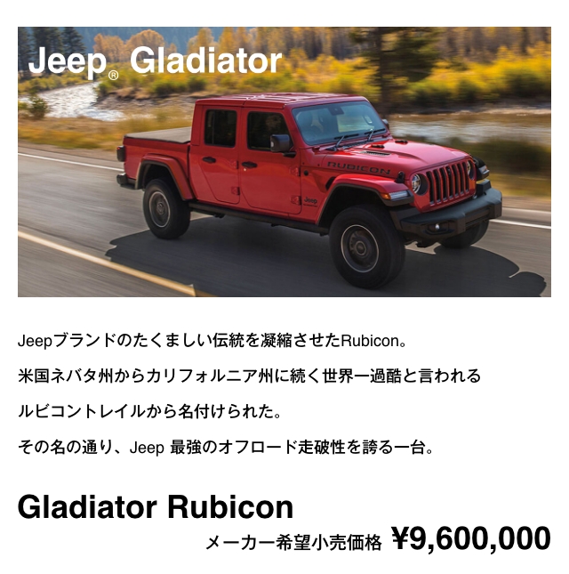 Renegade、Compass、Gladiator、Wrangler、Grand Cherokee L