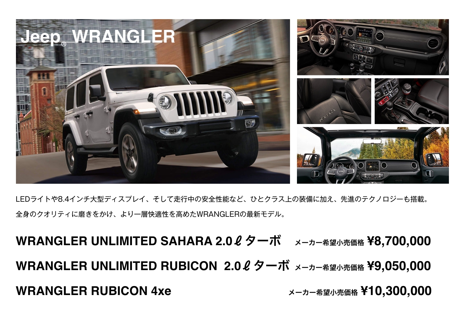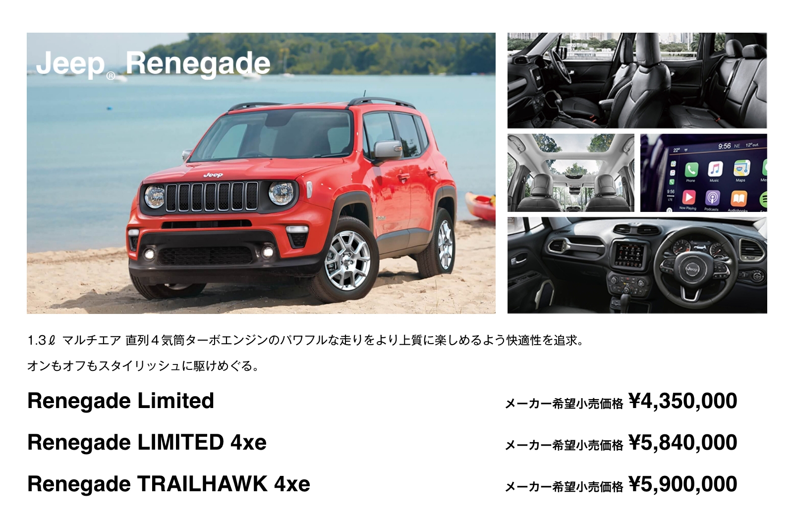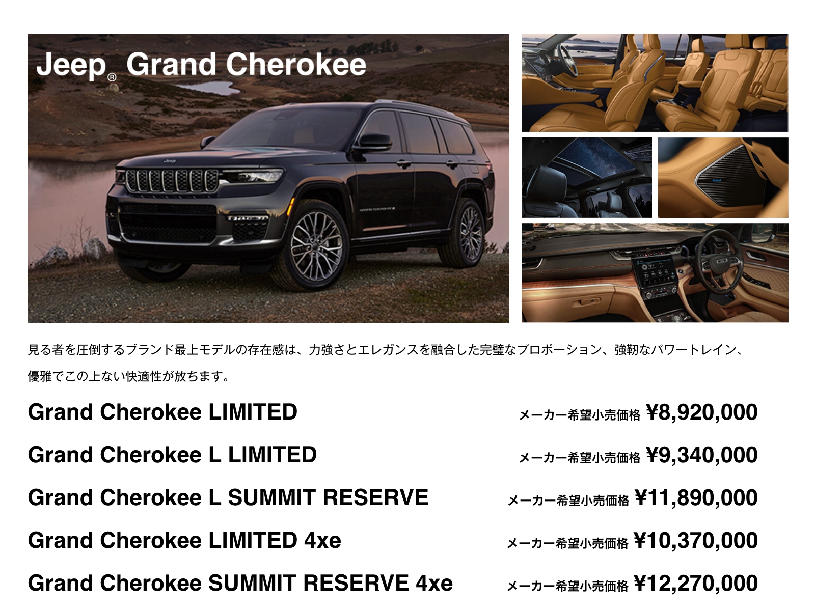Renegade、Compass、Gladiator、Wrangler、Grand Cherokee L