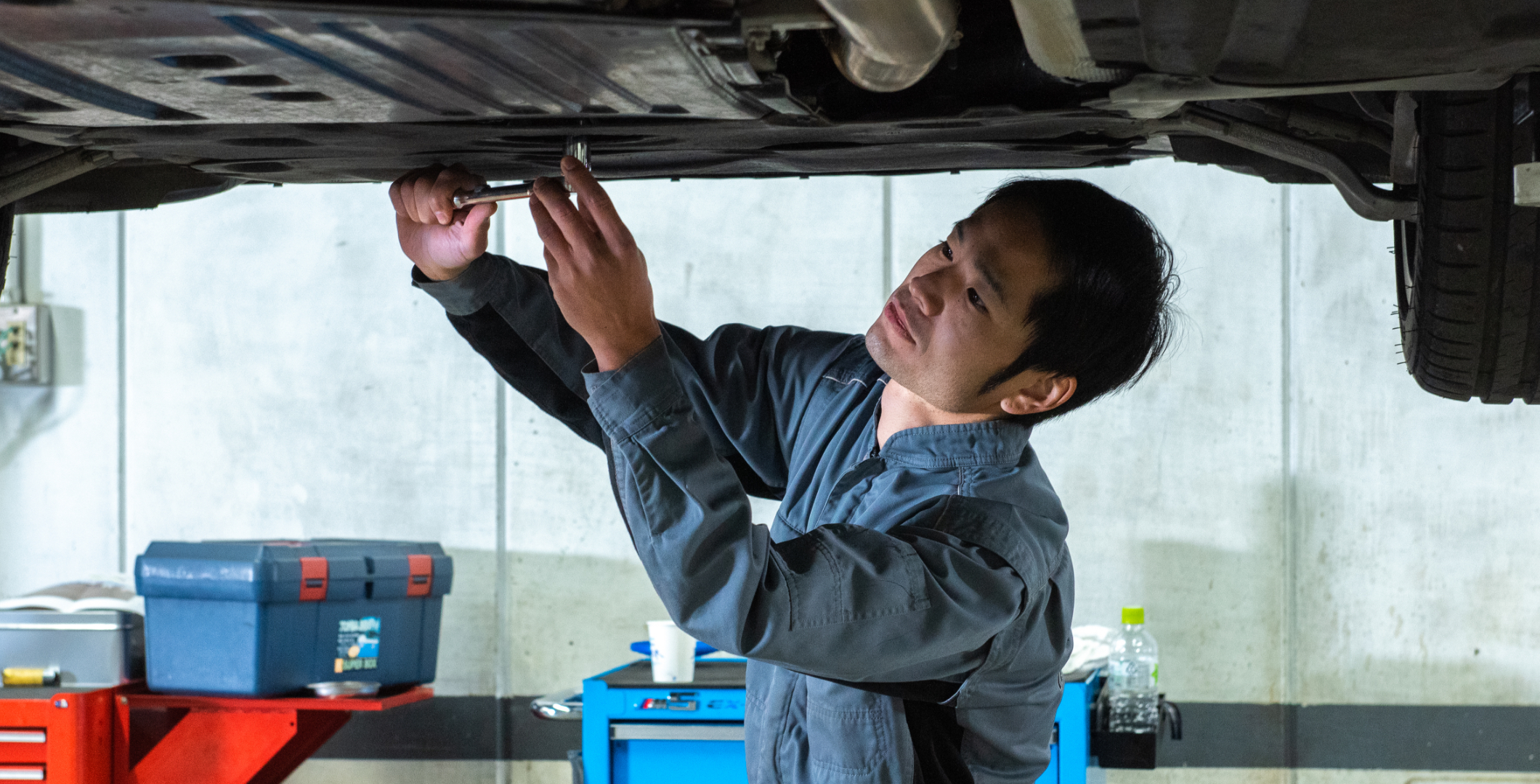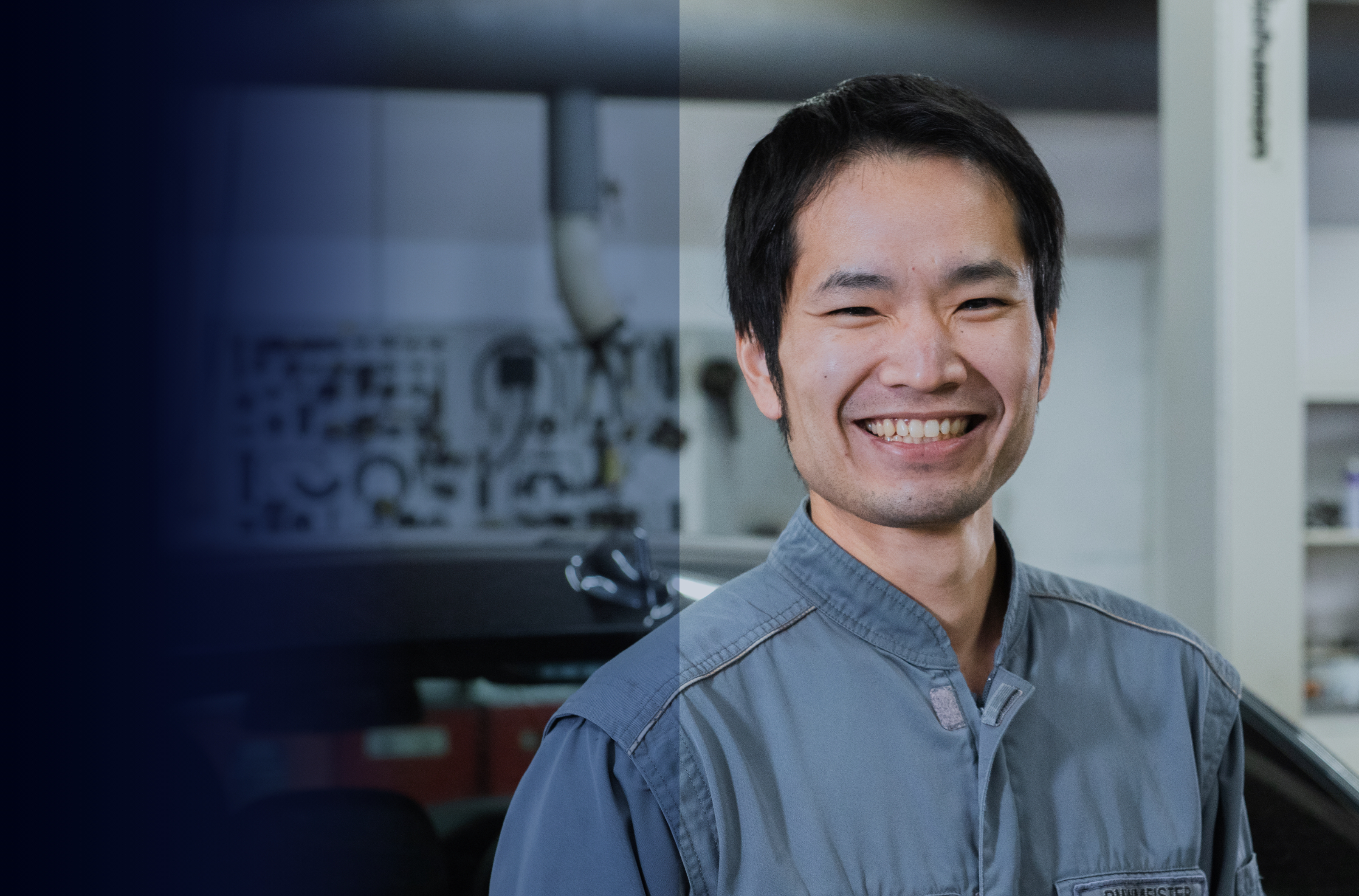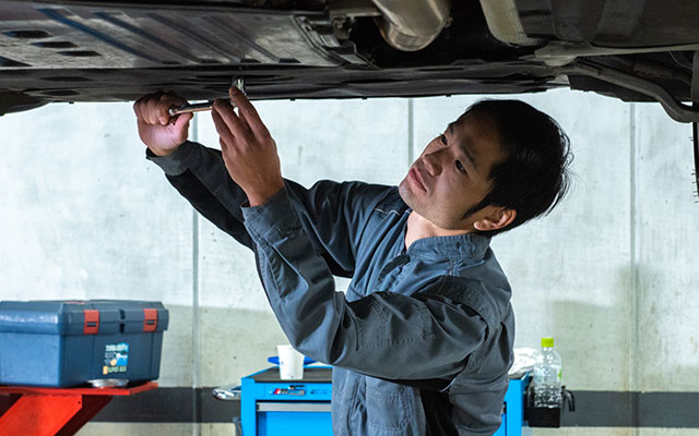 小さい頃から「スーパーカー」が好きでした。「乗ってみたい!」という想いは、いつのまにか自分の仕事になっていました。「好き」から始めた整備の仕事ですが、知れば知る程に奥が深く、ベテランになった今でも発見の毎日です。今は、たくさんの後輩が出来たこともあり、作業をするというよりは、現場を管理する仕事へと変わっています。当社のメカニックは自分のツールは自分で揃えていきます。最初は先輩のお下がりから始まりますが、自分の仕事のスタイルに合わせて道具も自分に合ったものを使います。工具の業者さんが定期的に直接販売にくる程、私たちの道具へのこだわりは強いんです(笑)。自分の知識や技術を高められる環境は、こういった文化から生まれているのかもしれません。これからも、後輩を育て、ステキなメカニックチームを作っていきます。